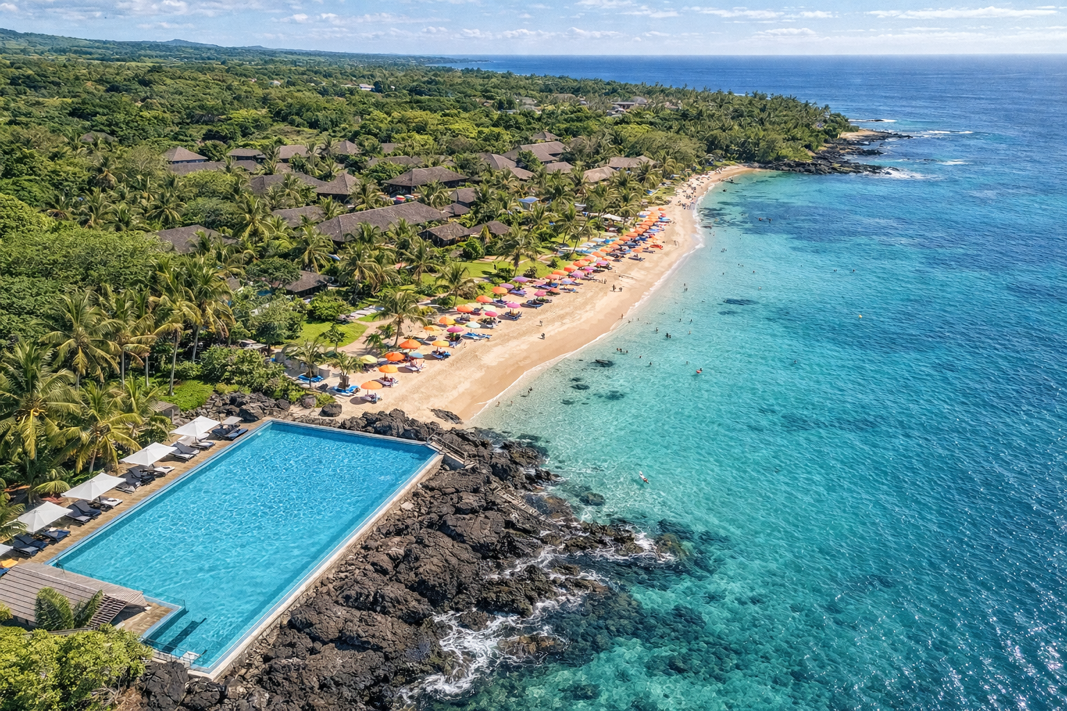 Le Village est le resort principal — chambres dans de petits bâtiments de deux ou trois étages intégrés à la végétation, piscines, restaurants, animations GO et toutes les activités Club Med. Situé le long d’une crique sablonneuse sauvage, le Club Med La Plantation d’Albion est un Resort de luxe tout compris adapté aux familles, sur la côte ouest de l’île Maurice, où la mer turquoise rencontre le sable corallien ombragé de palmiers et les jardins exotiques luxuriants.