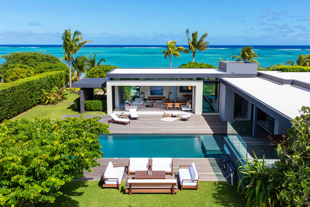 À Grand Baie, une villa contemporaine 3 chambres avec piscine privée et jardin est proposée à 595 000 €. À Tamarina Golf, une villa de 550 m² sur 3 123 m² de terrain est disponible dans le cadre du programme PDS. À Blue Bay, des villas pieds dans le sable avec accès direct à la plage et vue sur le Morne sont proposées avec permis de résidence permanent inclus.